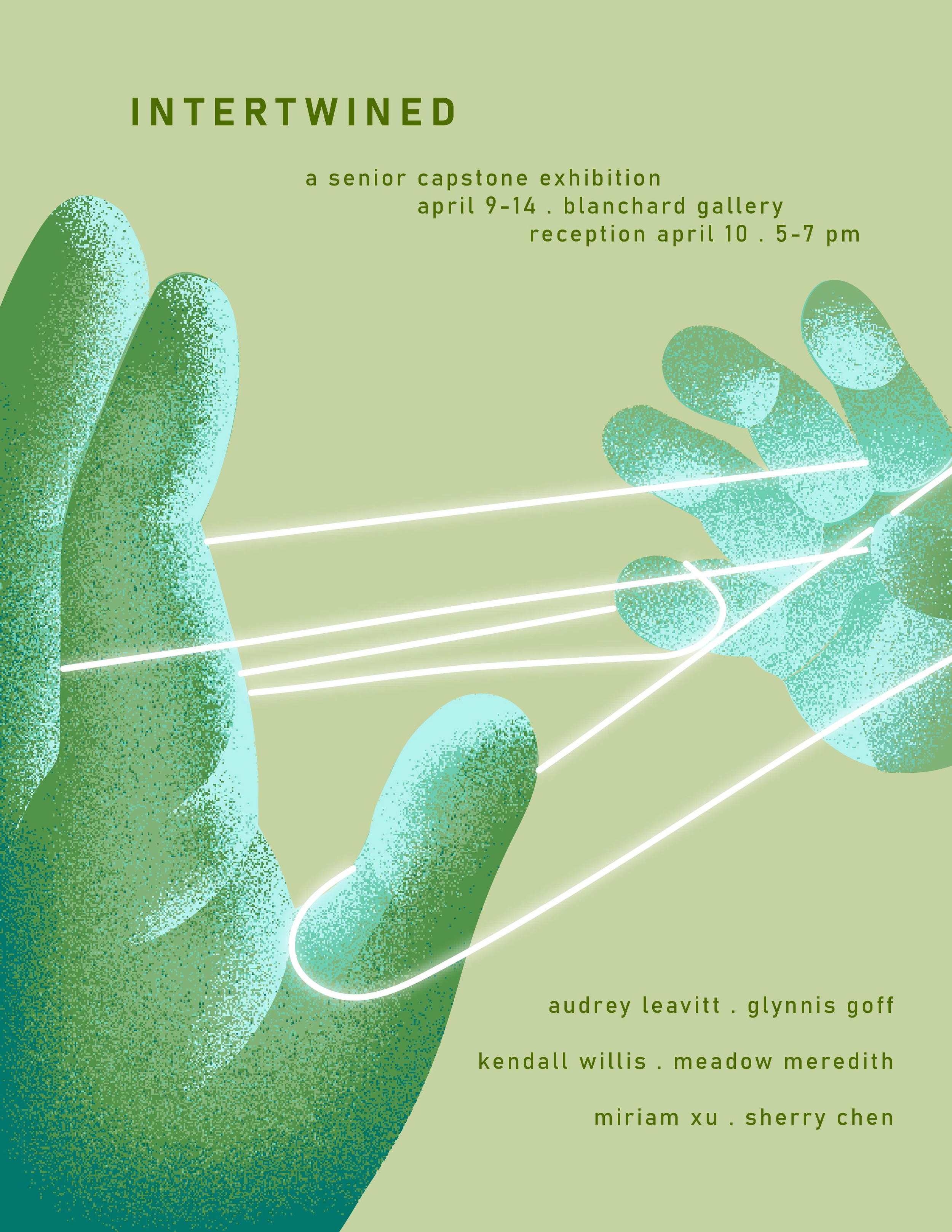 The show features artwork by: Audrey Leavitt, Glynnis Goff, Kendall Willis, Meadow Meredith, Miriam Xu, and Sherry Chen.